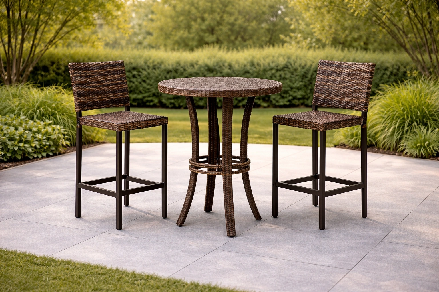 Conçu avec un matériau tressé et une structure métallique, adapté aux terrasses ou aux jardins, avec une structure stable, pratique pour un usage quotidien et l’aménagement.