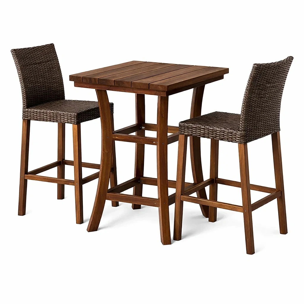 Ensemble de bar en acacia et rotin synthétique avec table et chaises