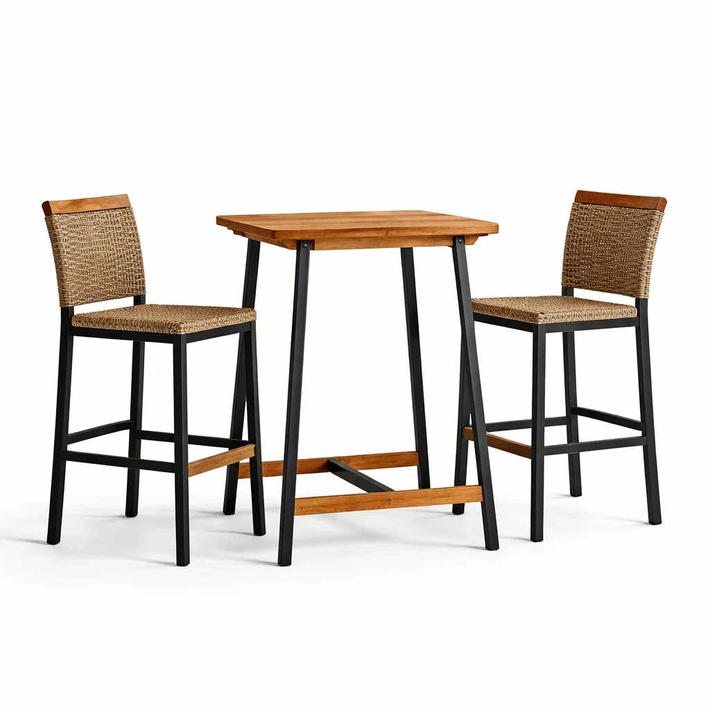 L'ensemble comprend une table haute et deux chaises.