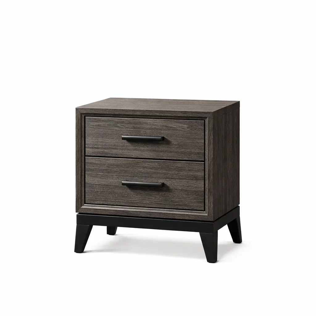 Table de chevet en bois et métal chêne gris avec 2 tiroirs